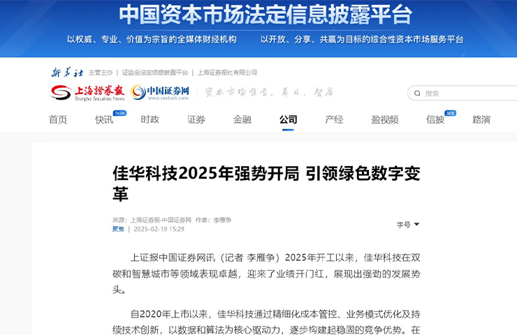 上海證券報 | 佳華科技2025年強勢開局 引領綠色數(shù)字變革